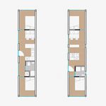 Espaço de dimensões mais reduzidas extremamente versátil para zonas com menor implantação disponível, ou para complemento a espaços já construídos, de custo extremamente económico mas com elevada qualidade estrutural, com espaço central incluindo zona de estar, zona de refeições e kitchenette (equipada), wc e quarto.